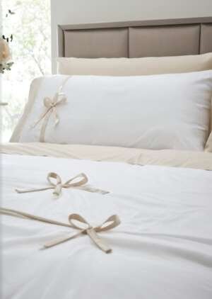 Komplet poszewek na kołdrą z kokardką, naturalny