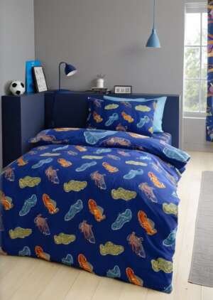 Komplet dwustronnych poszewek na kołdrą w kolorze jasnej piłki nożnej, granatowy