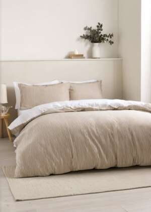 Zestaw dwustronnych poszewek na kołdrą Oxford w prążki, naturalny