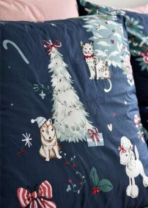 • Zestaw dwustronnych poszewek na kołdrą w kształcie choinki w kolorze granatowym