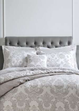 • Srebrno-szara, żakardowa, pikowana poduszka z adamaszku