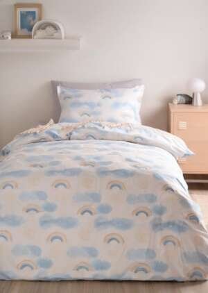 • Dwustronna bawełniana poszewka na kołdrą w kształcie renifera w kolorze niebieskim