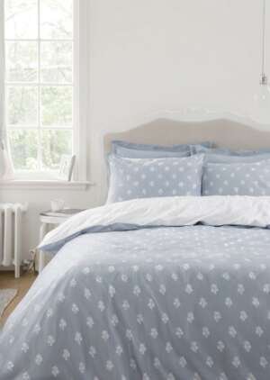 • Bianca Fine Linens Esme Dwustronna pościel z bawełny w kwiaty, biało-niebieska