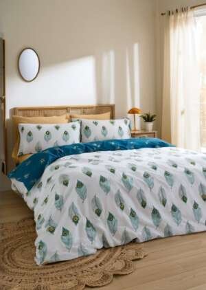 • Dwustronny zestaw poszewek na kołdrą z pawich piór, w kolorze turkusowo-zielonym