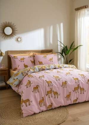 • Dwustronna bawełniana poszewka na kołdrą They Nibs Untamed Cheetah w kolorze szarym