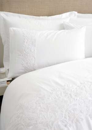 • Zestaw poszewek na kołdrą z bawełny z haftem kwiatowym w kolorze białym