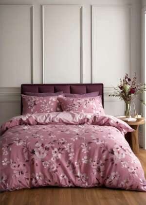 Zestaw poszewek na kołdrą w kwiaty, różowy