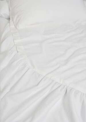 • Biała, czesana falbana bazowa z łatwym w żelazie perkalem
