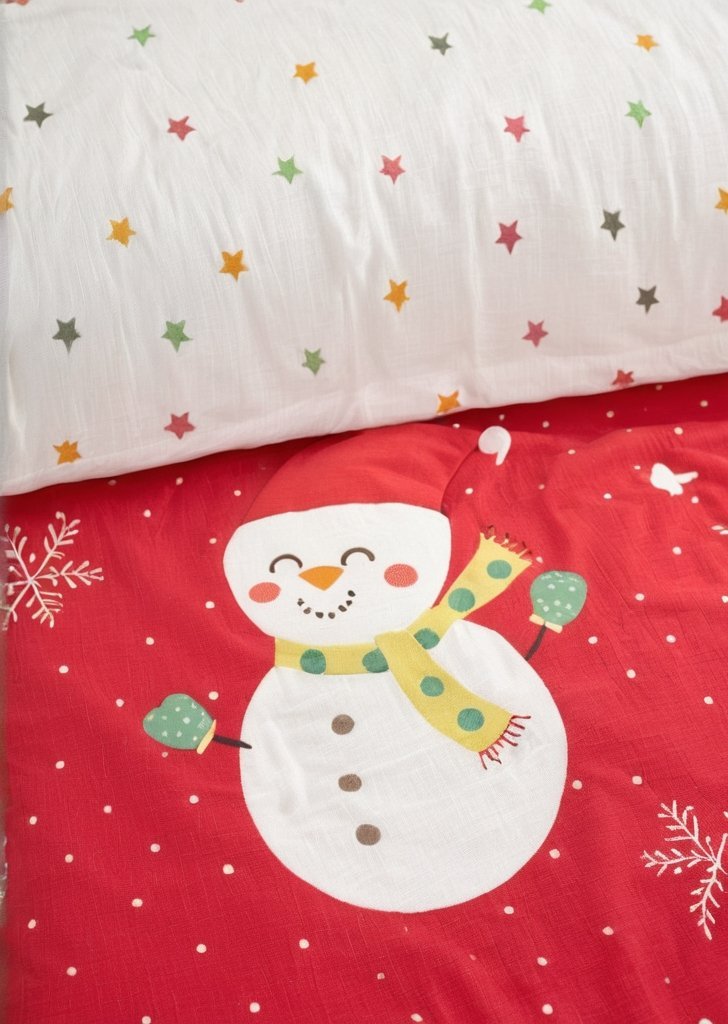 Czerwona poszewka na kołdrą Elf i Mikołaj