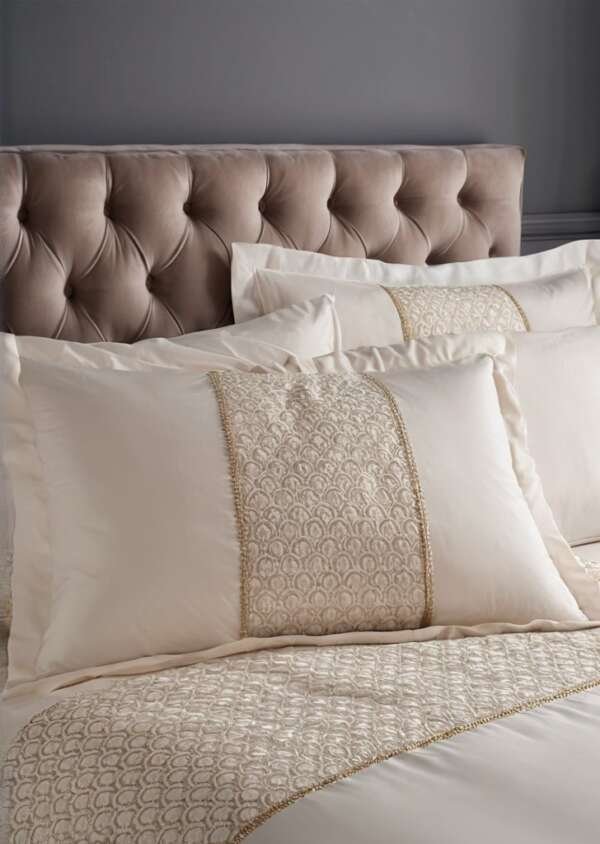 Podnieś atmosferą w swoim domu i stwórz przestrzeń błyszczącą ponadczasową elegancją. Dodaj odrobiną blasku do swojej sypialni dziąki tej kolekcji glamour z cekinowymi łukami. Ten oszałamiający egzemplarz, zainspirowany bogactwem epoki Art Deco, prezentuje olśniewający zestaw cekinów ułożonych w stylowy wzór w kształcie łuku.