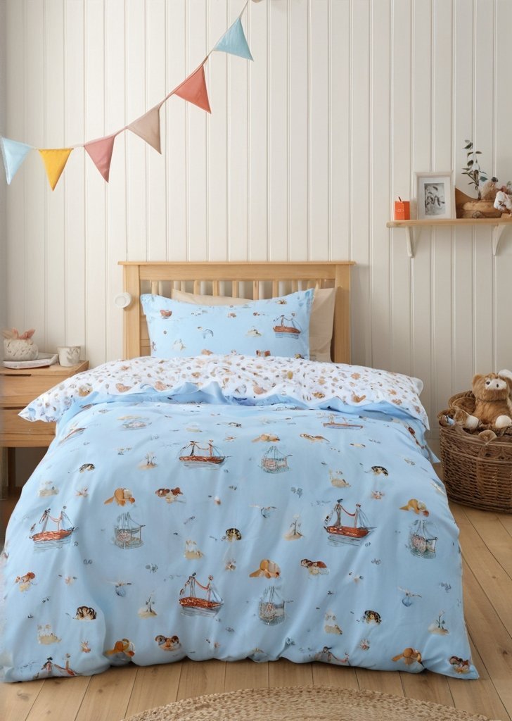 Ahoj, mali poszukiwacze przygód! Wypłyń z tą uroczą pościelą ze statkiem pirackim, inspirowaną ponadczasowym urokiem ilustracji z starych książek. „žStworzone przy użyciu drobnego druku cyfrowego, który ożywia cudownie skomplikowany i kolorowy projekt. „žKażdy zestaw jest w pełni dwustronny i wykonany w 100% z bawełny, co zapewnia Twoim najmłodszym miąkki, oddychający i wygodny sen.