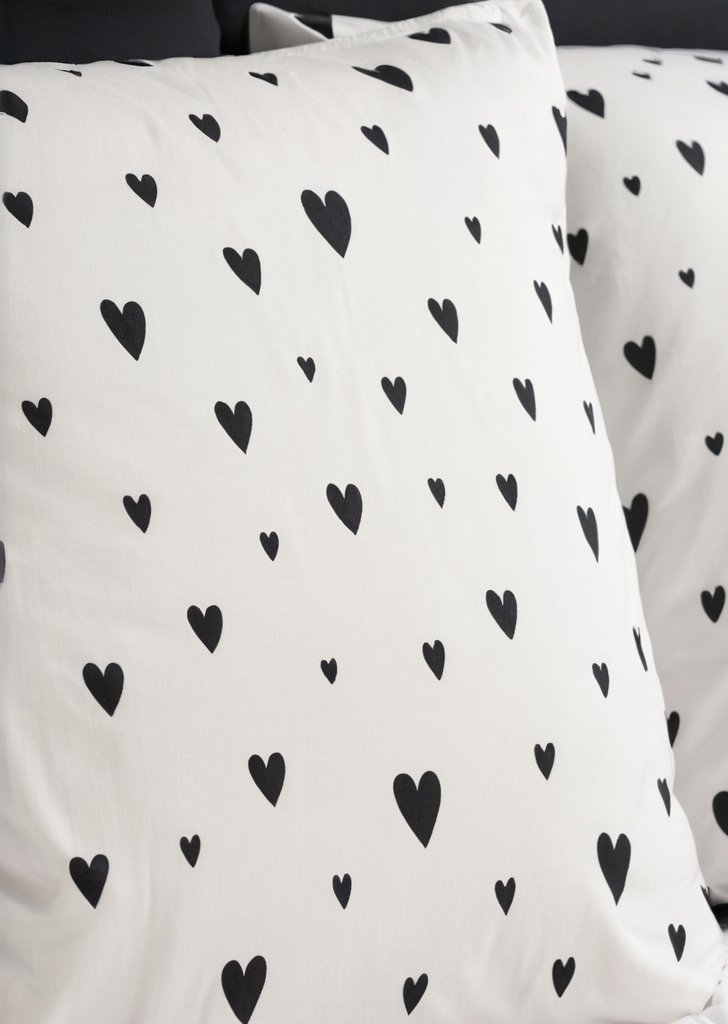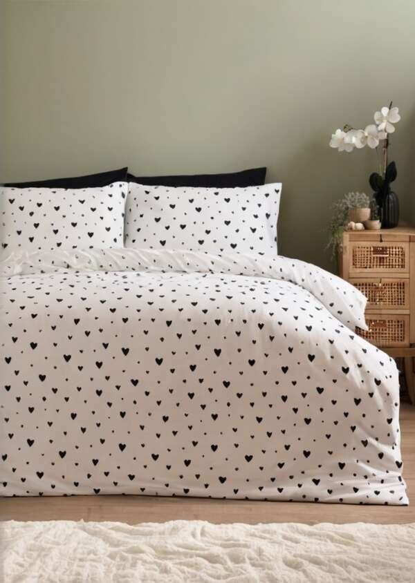 Komplet pościeli w czarno-białe serce