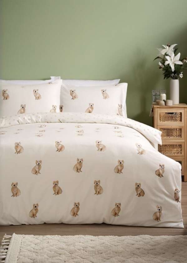 Kremowy komplet pościeli z nadrukiem Cockapoo