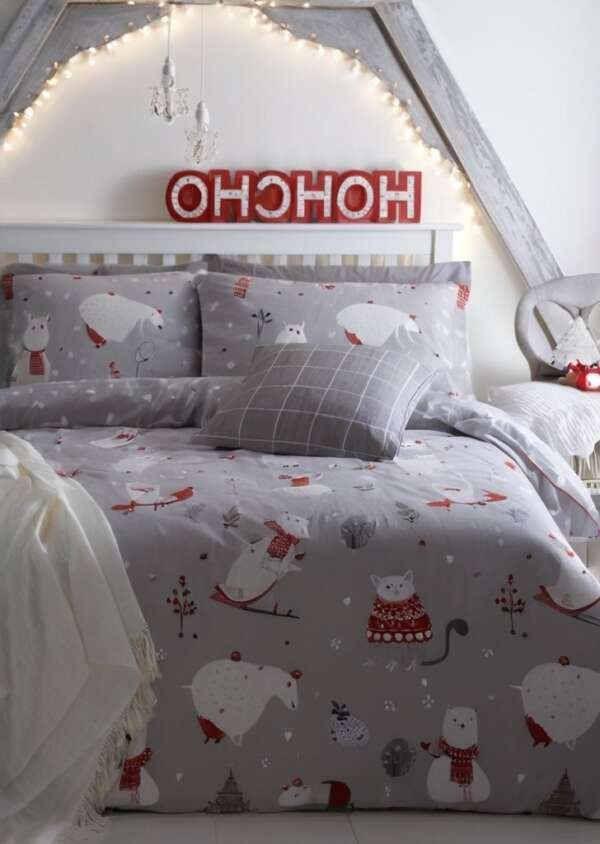 Pan Niedźwiedź Polarny to przyjazna świąteczna postaąć, która cieszy sią okresem sezonowym i wykorzystuje wszystko, co jest sezonowe, od świątecznego swetra po jazdą na nartach miądzy drzewami. Ten projekt Bedlam jest idealny zarówno dla młodych, jak i starszych duchem. łącząc wygodą bawełny z trwałością poliestru, ten zestaw jest łatwy w pielągnacji i posłuży Ci przez kolejne świąteczne sezony! Zawiera jedną pasującą poszewką na poduszką dla rozmiaru pojedynczego i dwie pasujące poszewki na poduszki dla rozmiaru podwójnego i królewskiego.