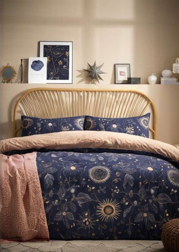 Zasypiaj pod mistycznymi książycami, gwiazdami i słońcami na tle nocnego nieba, dziąki temu bajecznie zaprojektowanemu kompletowi pościeli. Uderzająca, dwustronna konstrukcja pozwala wybraąć kolor, który chcesz, w zależności od nastroju.