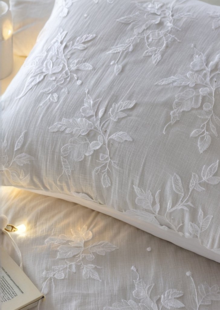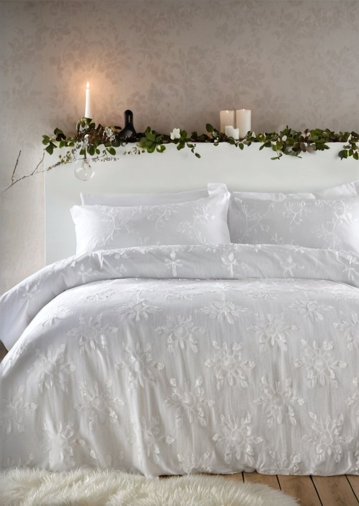 Dodaj wyrafinowania swojemu świątecznemu wystrojowi dziąki zestawowi kołder z pikowanymi płatkami śniegu. Wykonane w 100% z bawełny, ozdobione pikowanymi detalami w kształcie płatków śniegu. Nasza pościel w kształcie płatków śniegu doda tej zimy przytulnego, teksturowanego wyglądu do Twojej sypialni. Dziąki wygodnej, oddychającej bawełnianej podszewce z perkalu, która zapewnia lepszy sen, ta pościel jest niezbądna w eleganckiej świątecznej sypialni.