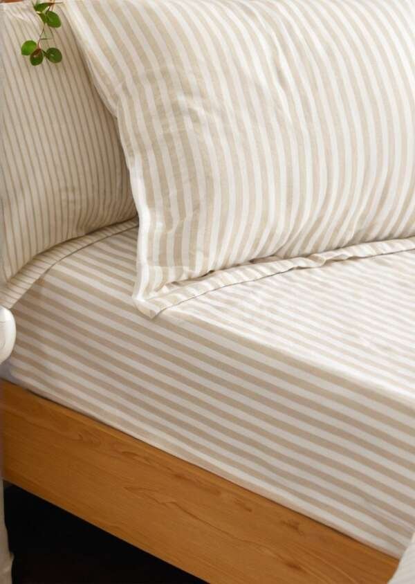 Naturalne prześcieradło z bawełny w paski w melanż