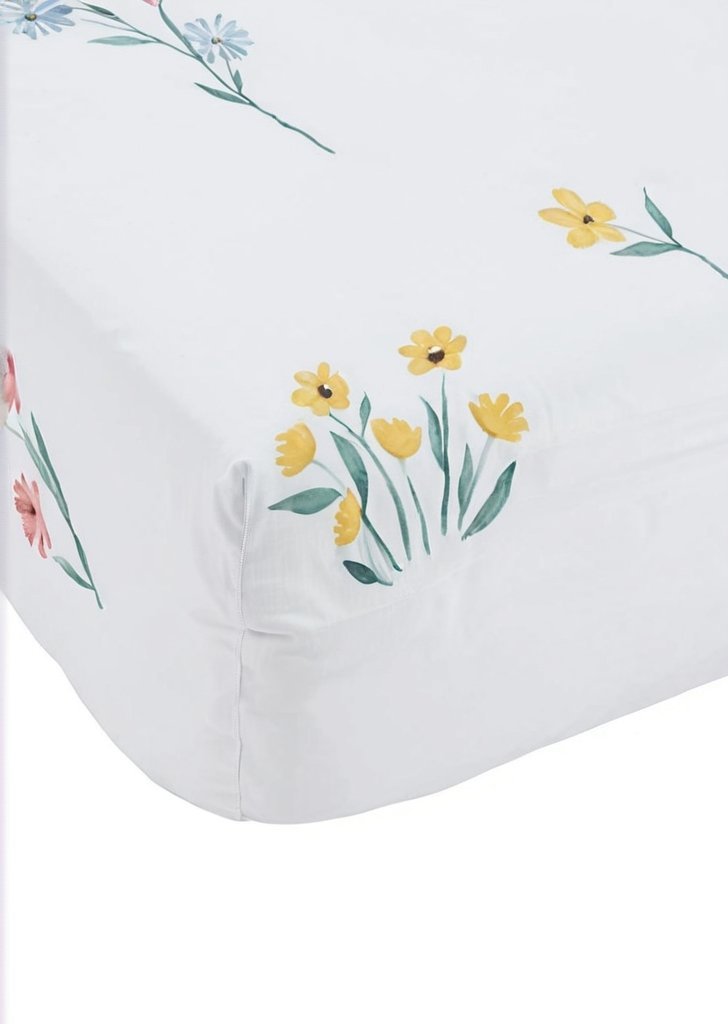 Zamień łóżko swojego malucha w kwitnący raj dziąki temu uroczemu prześcieradłu ozdobionemu uroczymi bukietami kwiatów. Pozwól im rozkwitnąć wśród żywych płatków i dodaj odrobiną kwiatowej elegancji do jej przestrzeni do spania. Wykonane z łatwego w pielągnacji poliestru i bawełny pochodzącej z recyklingu, przeznaczone do codziennego użytku.