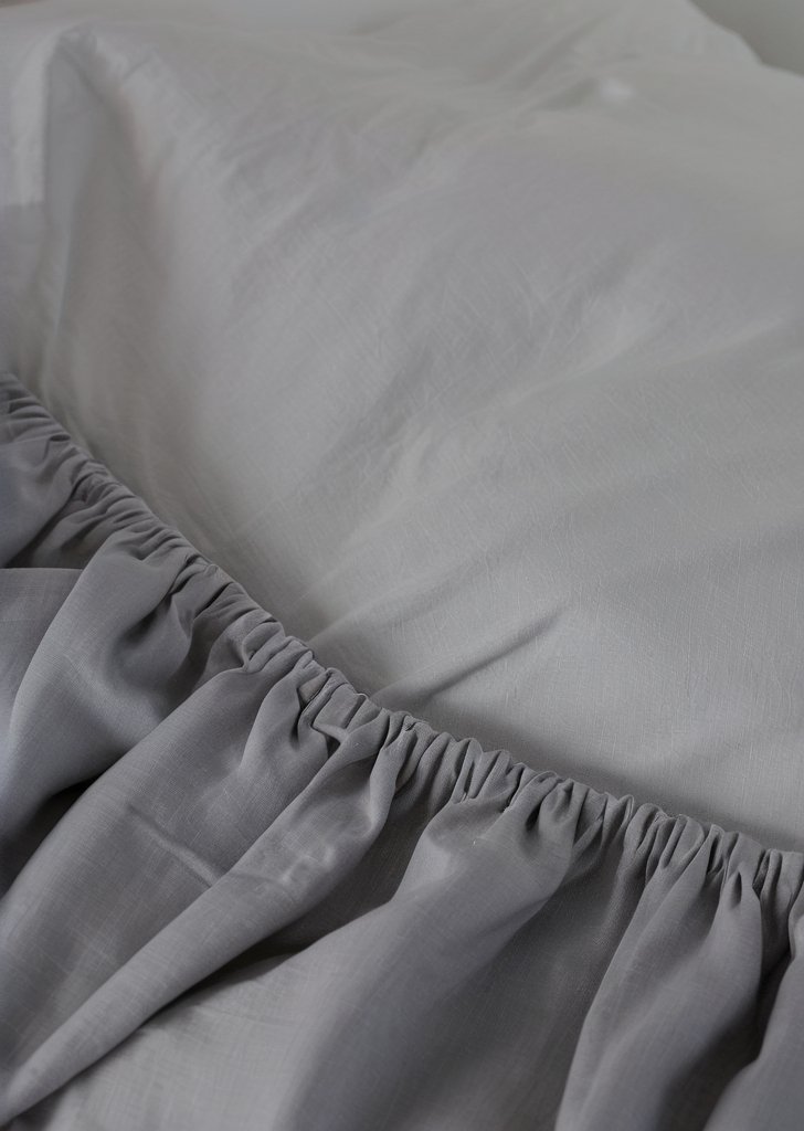 szare prześcieradło z polibawełny (144 nitki)