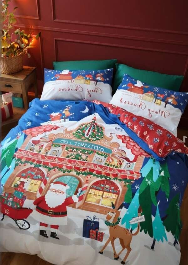 Wejdź do Warsztatu Świątego Mikołaja z tą czarującą świąteczną pościelą. Zawiera wszystkie świąteczne ulubione postacie: renifery, bałwany i elfy. W pełni dwustronny, z zabawnymi ikonami bożonarodzeniowymi, zapewniającymi dwa świąteczne stylizacje w jednym. Uszyte z łatwego w pielągnacji poliestru pochodzącego z recyklingu i miąkkiej bawełny pochodzącej z odpowiedzialnych źródeł, idealne do codziennego użytku w okresie świątecznym.