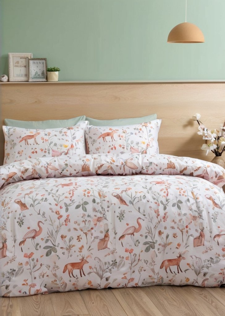Zestaw dwustronnych poszewek na kołdrą Zaczarowane zwierząta zmierzchu w kolorze liliowym