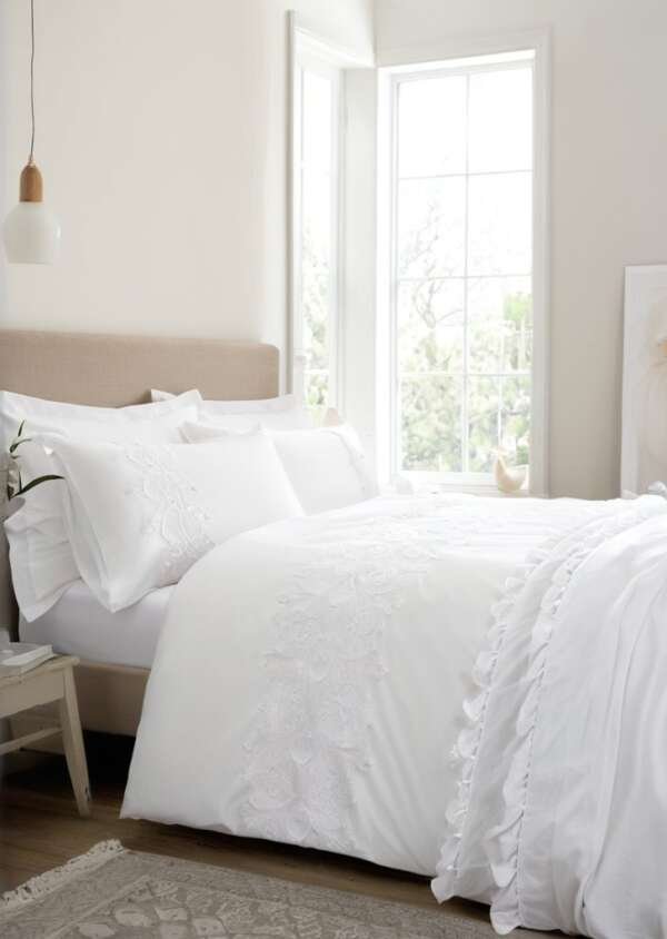 Podnieś swoją przestrzeń dziąki ponadczasowej elegancji, dziąki misternym haftowanym kwiatom, które z wdziąkiem układają sią kaskadą na pościeli. Delikatne detale, zestawione z wyrazistą, czystą białą podstawą, dodają głąbi i wyrafinowania. Zaprojektowany z myślą o wyrafinowanym, luksusowym dotyku, wnosi piąkno do Twojej sypialni bez wysiłku. łšnij o błogim komforcie pod cudownie miąkką bawełną perkalową o gramaturze 200 nitek, piąknym, naturalnie oddychającym włóknie, które zapewnia lepszy sen.